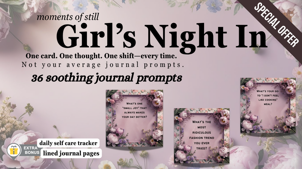 Whether you're journaling in the morning quiet, winding down after a long day, or simply creating space to breathe, the Moments of Still – Girl's Night In Journaling Card Set is here to support you.